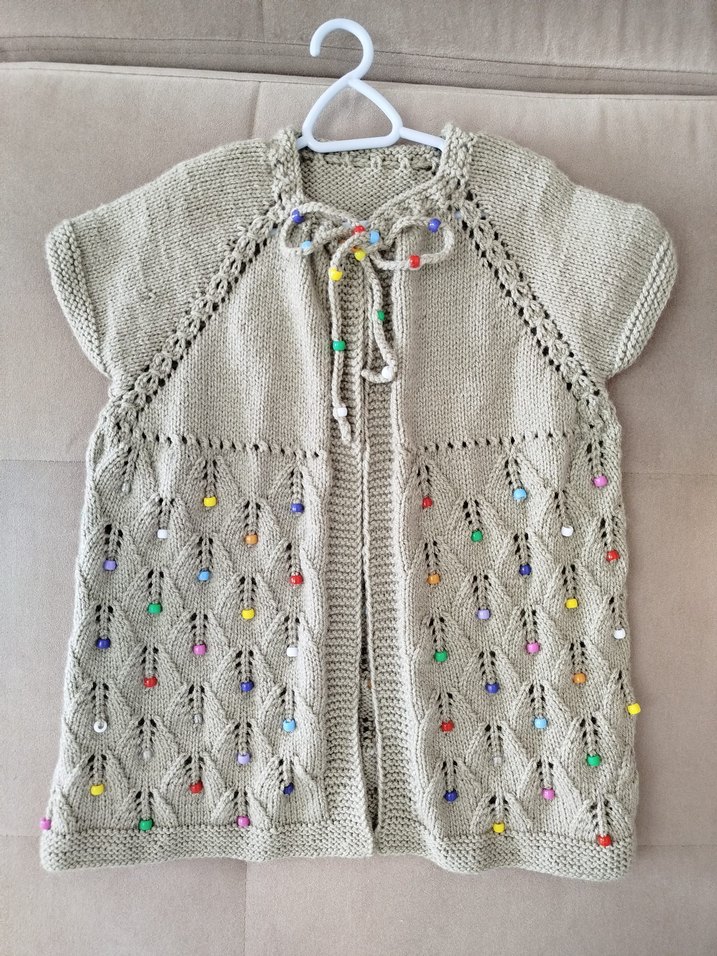 El örgüsü Kız çocuk hırka, renkli boncuk detayları ve bağcıklı kapanışa sahiptir. Sıcak ve yumuşak. Bej rengi. Maakul teklifleri kabul ediyorum. 24 saatte kargoda,