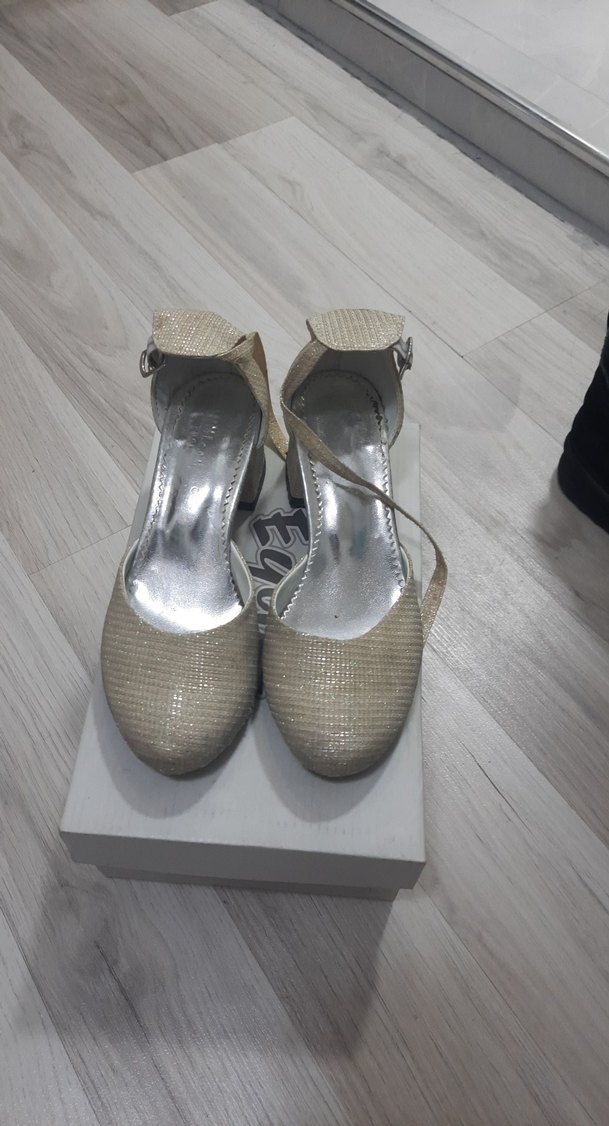 Düğün ve özel davetler için bej pırıltılı dolgu topuklu, tokalı çocuk ayakkabısı.