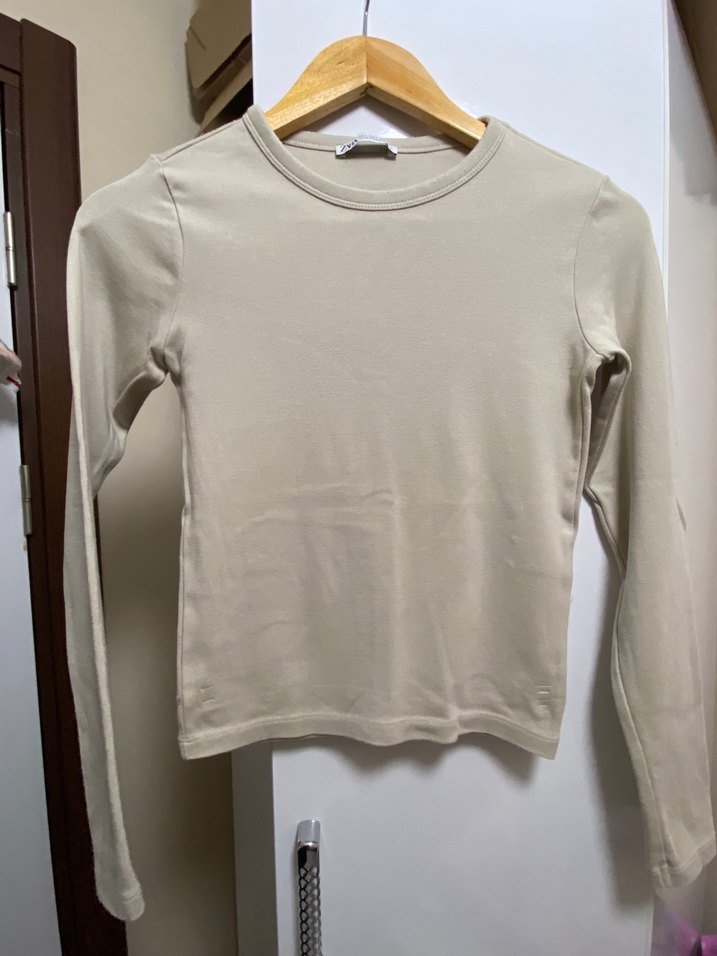 Bej renkli, uzun kollu ve yuvarlak yakalı kız tişörtü, pamuklu yumuşak kumaştan yapılmıştır. Basic ve şık sokak tarzına uygundur. Dar kesimdir. Bilerek l beden almıştım 55 kg dar oldu