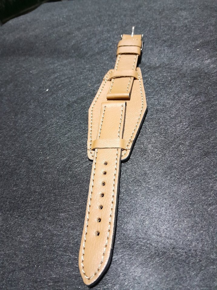 Bej renkte, geniş ve dolgun yapılı klasik biker tarzı erkek saat kordonu, sağlam dikişlerle vintage bir görünüm sunar. tüm mm leri var 18 mm 30 mm arası️
