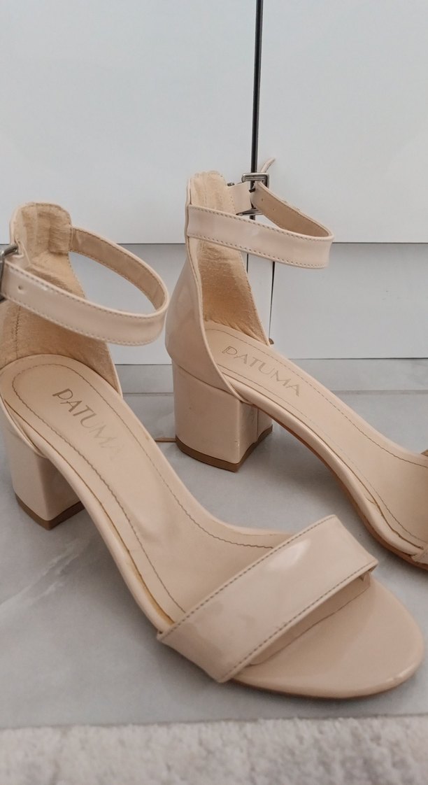 Bej renkte, tokalı bantlı blok topuklu sandalet. 2 kere giyilmiştir