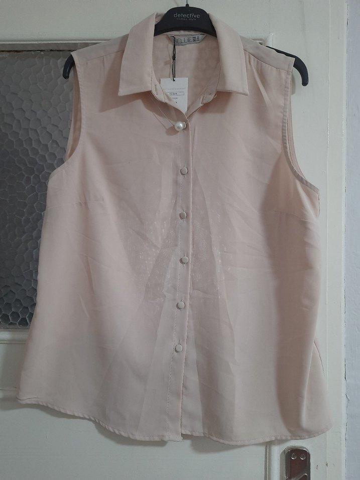 Bej renkte, keten kumaştan kolsuz gömlek. Düğmeli ve yakalı, rahat kesimiyle günlük sokak stiline uygundur. yeni ürün alan sadece yıkayarak kullanmalı biraz kirlendigi için uyguna koyuyorum