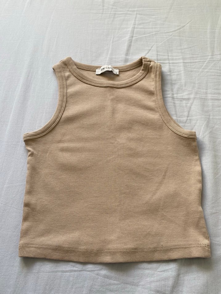 Bej renkli, kolsuz ve bisiklet yaka keten atlet, günlük kullanım için rahat ve sade tasarıma sahiptir. Minimalist normcore tarzıyla pastel tonlarda şıklık sunar.