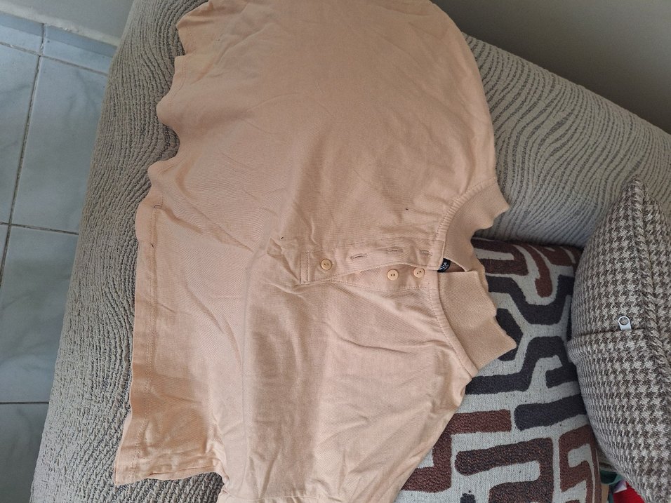 Bej renkli, kısa kollu polo tişört. Yaka kısmı düğmeli ve penye kumaştan , rahat kesimle günlük sokak stiline uygun.