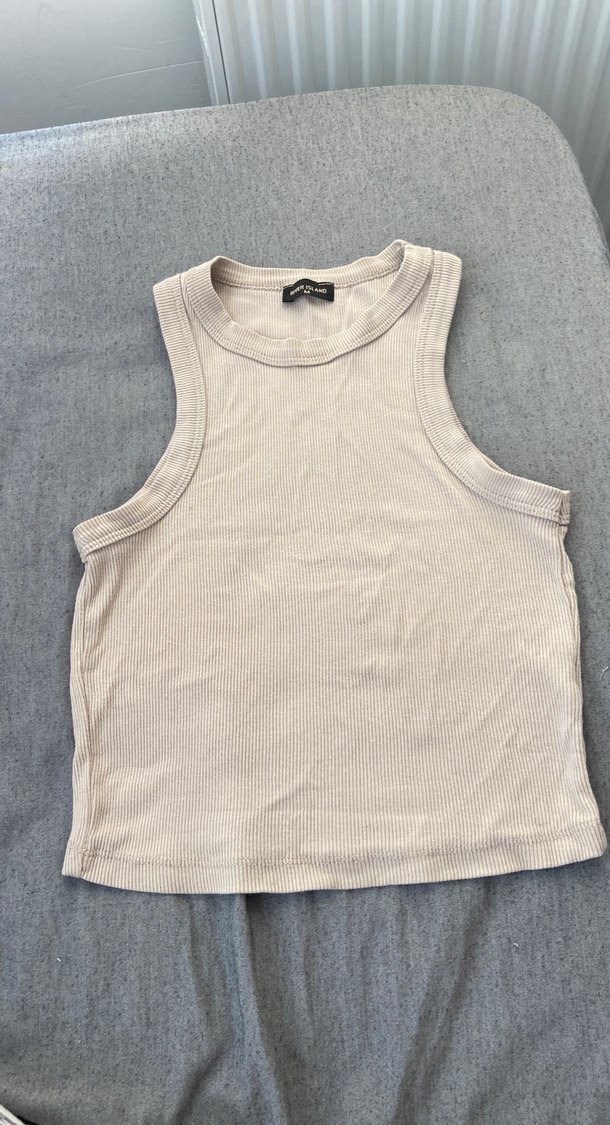 Bej renkte, nefes alabilir keten kumaştan yapılmış, yüksek yakalı ve kolsuz, vücuda oturan kadın atlet. Düz ve desensiz tasarımıyla günlük sokak modasına uygun, zahmetsiz şıklık sunar.
