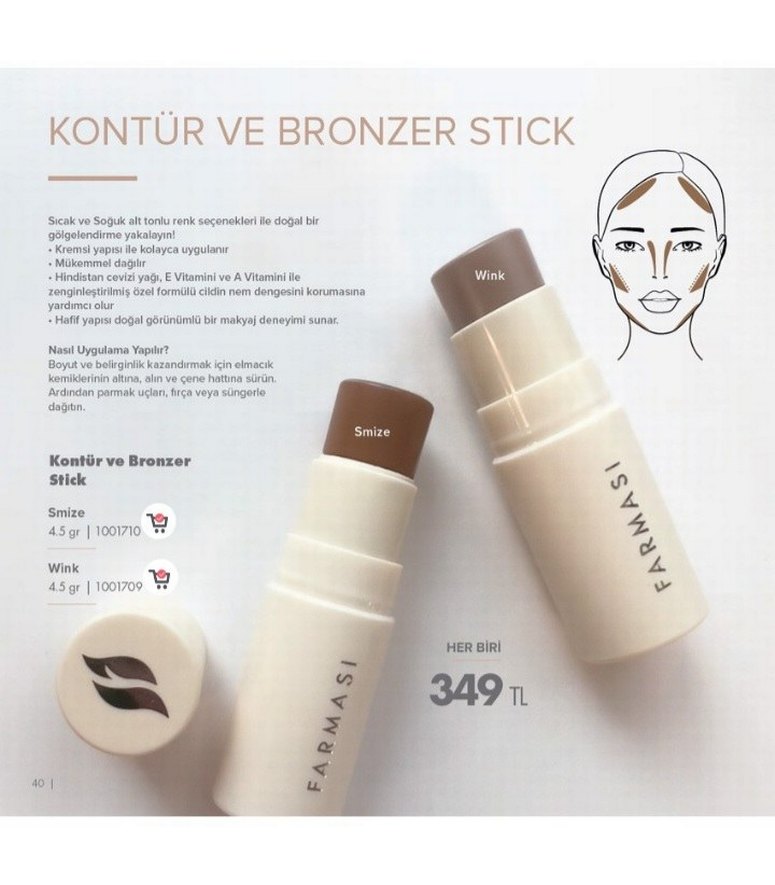 Vitamin E ve A ile zenginleştirilmiş, cildi nemlendiren bej tonlarında kontür ve bronzer stick. Doğal ve taze bir makyaj görünümü sunar.