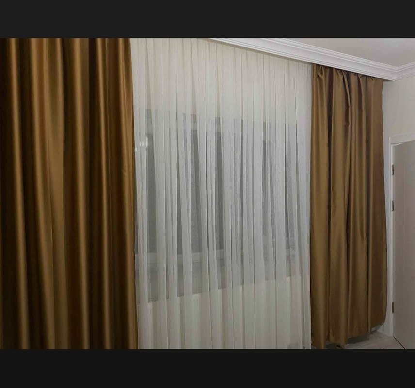 Hafif bej renginde, konvansiyonel ve desensiz tasarıma sahip perde.