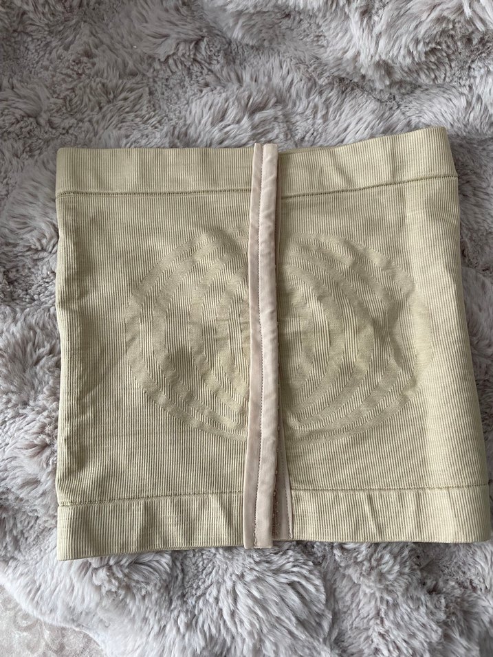 Bej renkte, düz ve pastel tonlarda, vücuda oturan midi boyda korse Rahatlık ve destek sağlar.