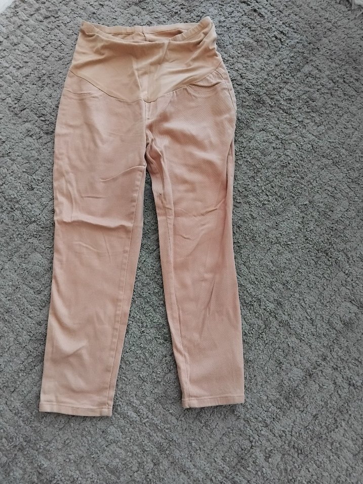 Bej kot kumaştan, normal boy ve regular fit kesime sahip hamile pantolonu, günlük kullanım için rahat ve şık bir seçenek sunar. sıfır gibidir