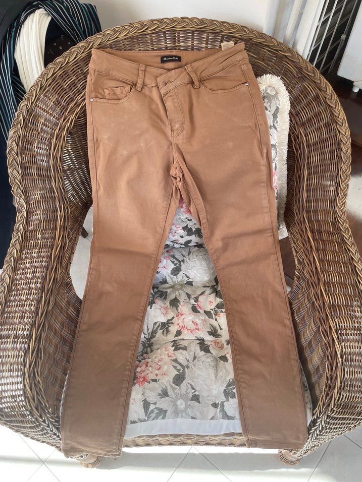 Bej renkli, kot, regular fit ve midi boy pantolon. Tokalı detayıyla dikkat çeker, günlük sokak stili için uygundur.