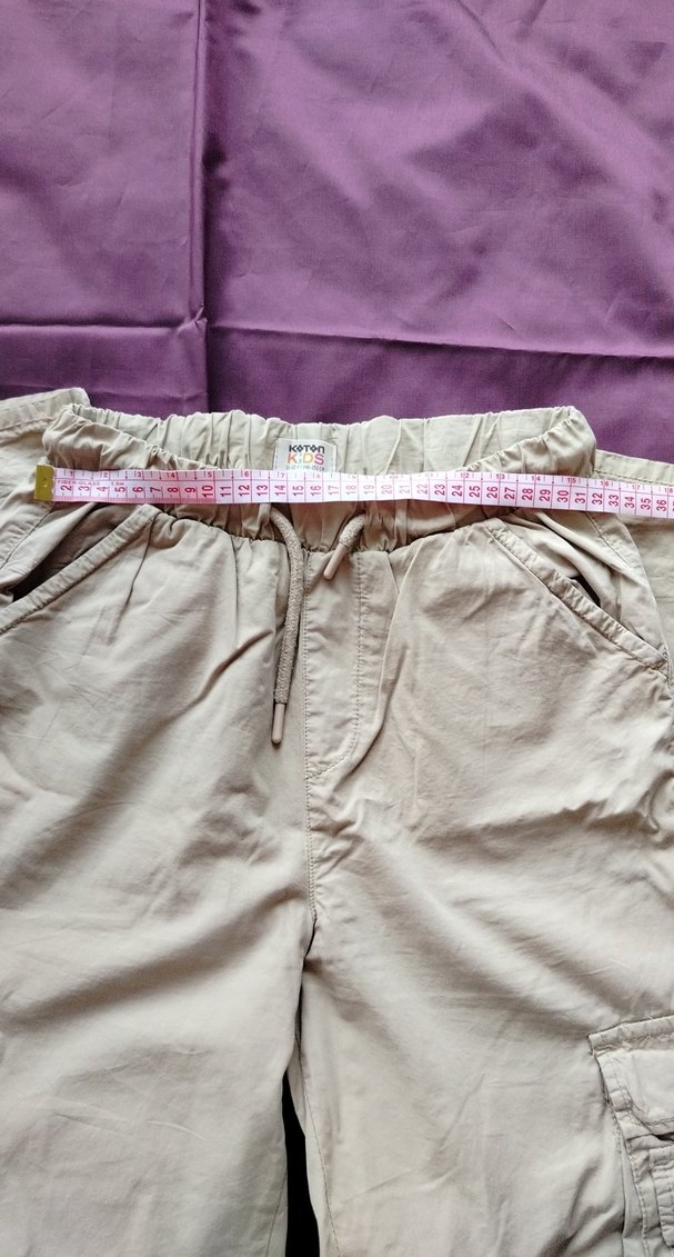 Bej renkli, pamuklu, belden kemerli ve bol kesim pantolon. Lastikli bel ve yan cepleriyle rahat ve günlük bir tarz sunar.