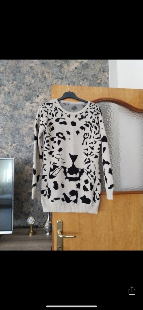 Bej krem Leopar Desenli Triko Kadın Kazak