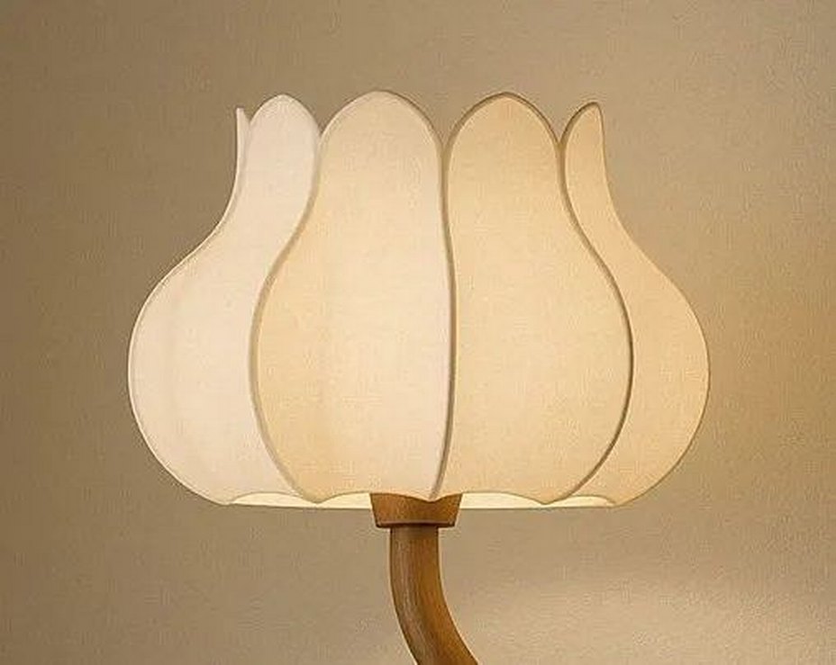 Bej krem rengi, lale şeklinde tasarlanmış yumuşak dokulu bir lamba . Sıcak bir ortam sağlar.