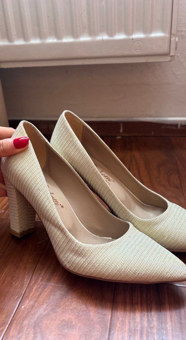 Bej krem renkte parıltı Detaylı Kadın Topuklu Ayakkabı