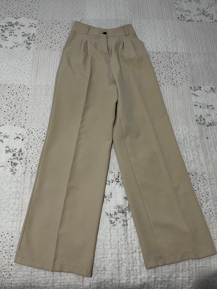 Bej midi boy kumaş pantolon, düzenli kesim ve düz desensiz. Ofis için uygun, rahat ve şık Paris etkili tarz sunar.