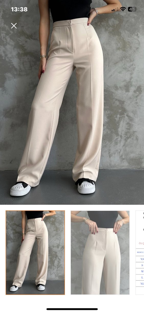 Yrni aldim zayifladigim icin giyemiyorum hicbir kusuru yok. Bej midi boy düz kesim kadın pantolon, yumuşak sentetik kumaştan. Desensiz bu pantolon, ofis için zahmetsiz şıklık sunar.