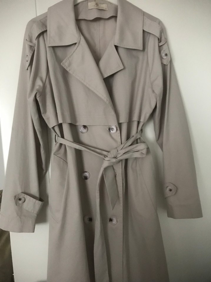 Bej renkli, kuşaklı ve notched yaka detaylı uzun deri trençkot astarsızdır .Strappy kollu, rahat kesimli ve sokak stiline uygun. Boy 120.. 2 kol arası 50 sntm