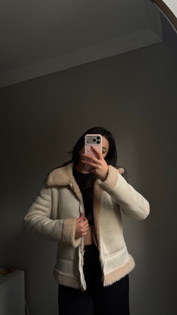 Bej renkli, kürk detaylı, normal boy, uzun kollu, kesimli kadın kışlık ceket. Yumuşak ve sıcak kumaştan üretilmiş, günlük kullanıma uygun rahat bir modeldir. ❄️ full pamuk