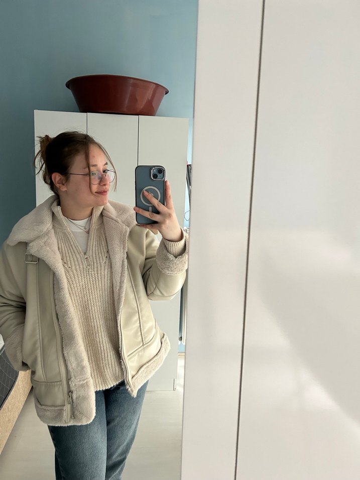 Bej renk, kürk detaylı, uzun kollu kadın kışlık mont. Rahat kesimi ve yumuşak, sıcak kumaşıyla günlük kullanıma uygundur.