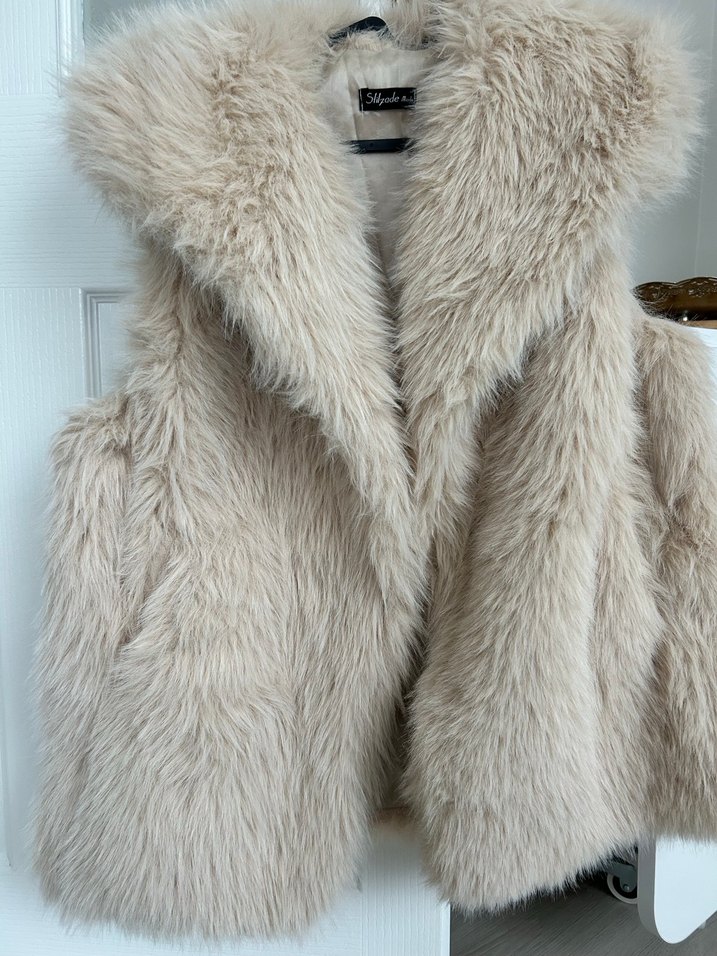 Bej renkte, kürk detaylı, kolsuz midi yelek. Notched lapel yakalı, vücuda oturan kesimiyle rahat ve bohem tarz sunar.