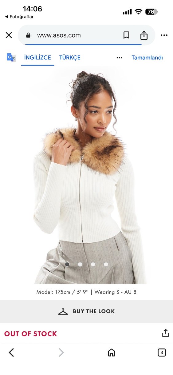 Bej renkli, kürk detaylı yaka ve uzun kollu, yün karışımlı triko ceket. Orta boy ve vücuda oturan kesimiyle rahat ve şık bir görünüm sunar. Model 175 cm, S beden giyiyor.