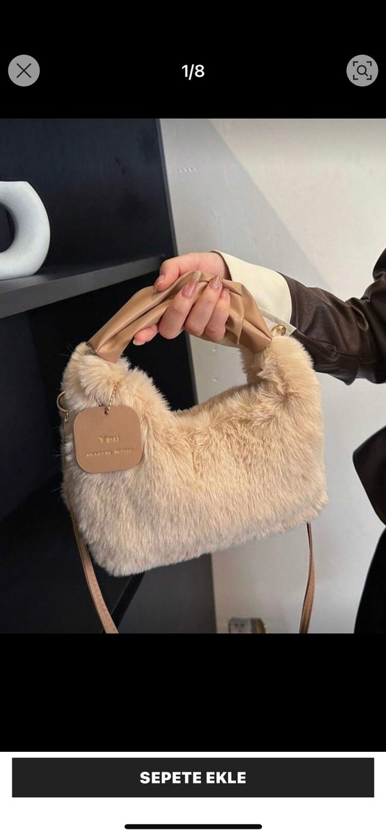 Bej renkte deri çanta, yumuşak kürk detayları ve pürüzsüz sapıyla günlük rahat sokak stiline uygun, desen içermeyen şık bir modeldir.