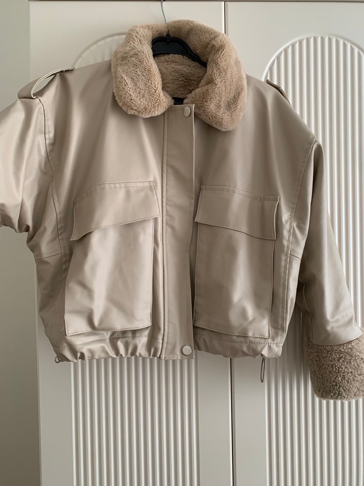 Bej Kürklü Deri Kadın Ceket - Görsel 4