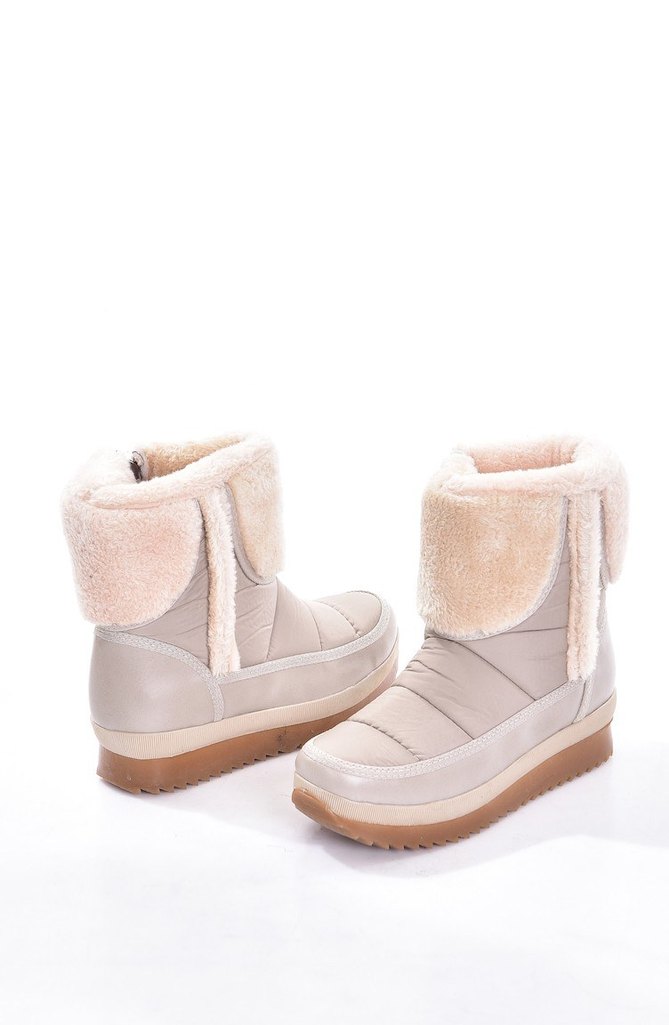Bej renk, kürklü detaylı ve dolgu topuklu kadın botları. Kauçuk tabanlı, desen içermeyen bu rahat botlar, günlük kullanıma uygundur. ❄️