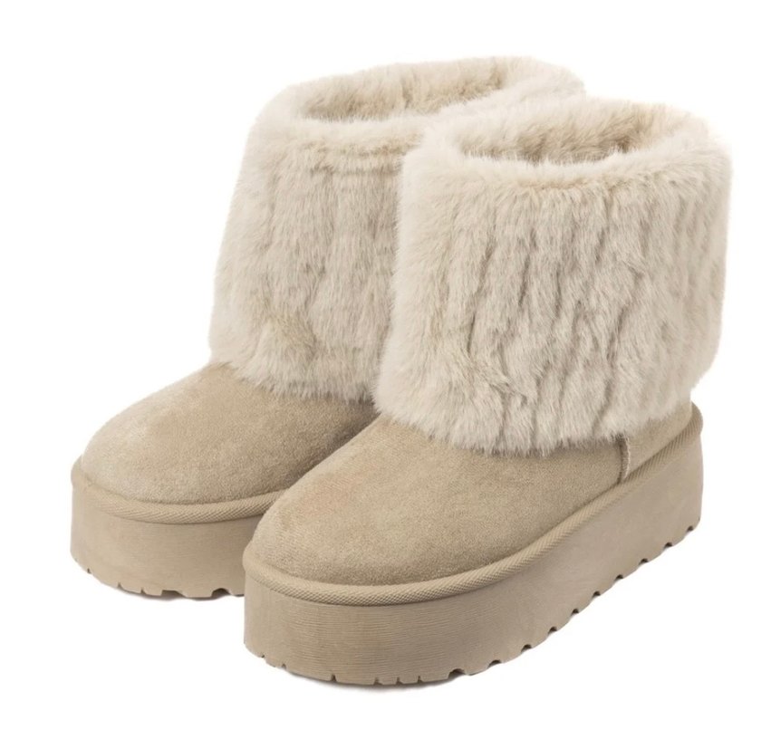 Yeni ürün. Kullanılmadı. Bej renkte, yumuşak tüylü kumaş ve kürk detaylı, kadın botu. Desensiz tasarımıyla rahat ve trend bir görünüm sunar. Çok sık be rahat.