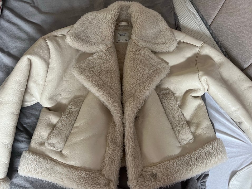 Bej renkli, kürk detaylı, yumuşak ve sıcak kumaştan yapılmış, normal boyda, kesimi vücuda oturan kadın ceketi. Günlük kullanıma uygun, desen içermeyen rahat bir model.