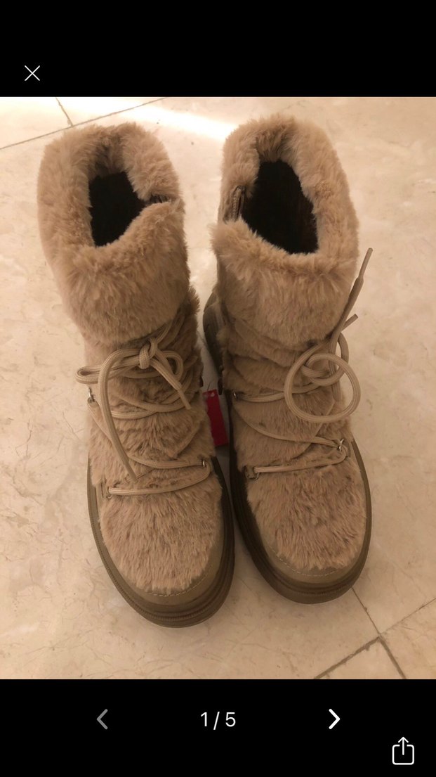 Bej Kürklü Kadın Dolgu Topuk Bot
