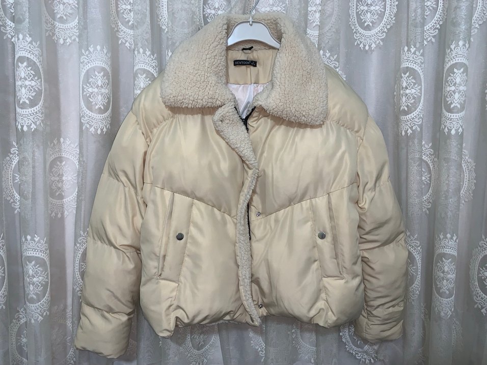 Bej renkli, kürklü detaylı, yumuşak dokulu kadın kışlık mont. Notch yaka ve bol kesimiyle rahat, midi boyda, günlük kullanıma uygun.