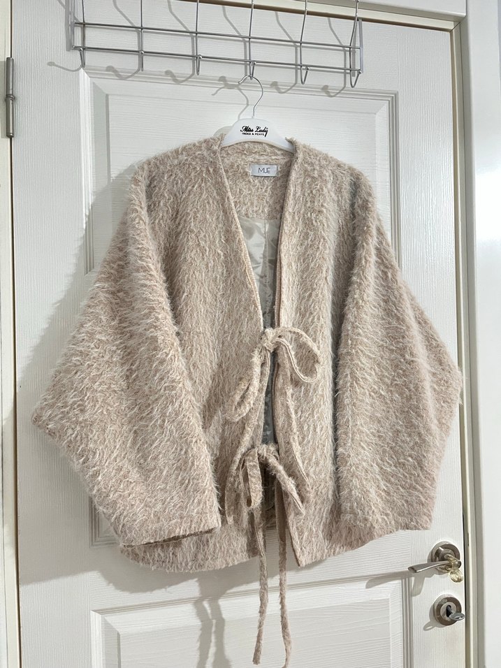 Bej renkli, kürk detaylı örgü hırka. Uzun kollu ve bol kesimdir. Halter yaka ve ön bağcık detayıyla rahat bir normcore tarz sunar. Günlük kullanıma uygundur. Kolunun birinde iç astarında biraz sökük var halledilir benim zamanım yoktu fiyata yansıttım zaten