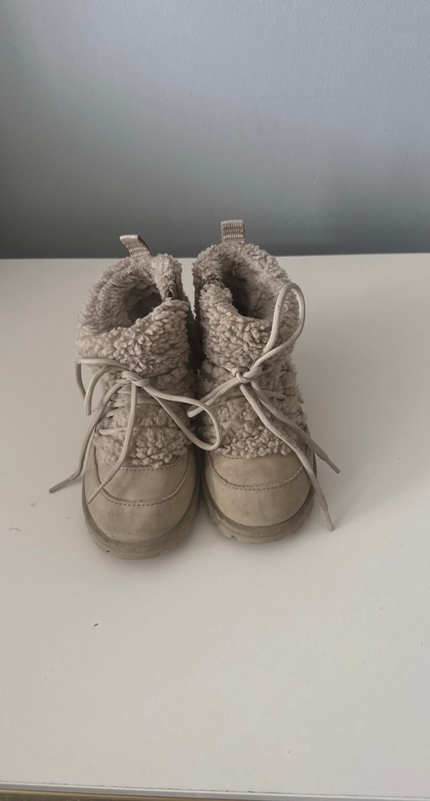 Bej renkli, yumuşak ve sıcak hissi olan kürklü kız çocuk botu, sade ve trend casual tarzda.