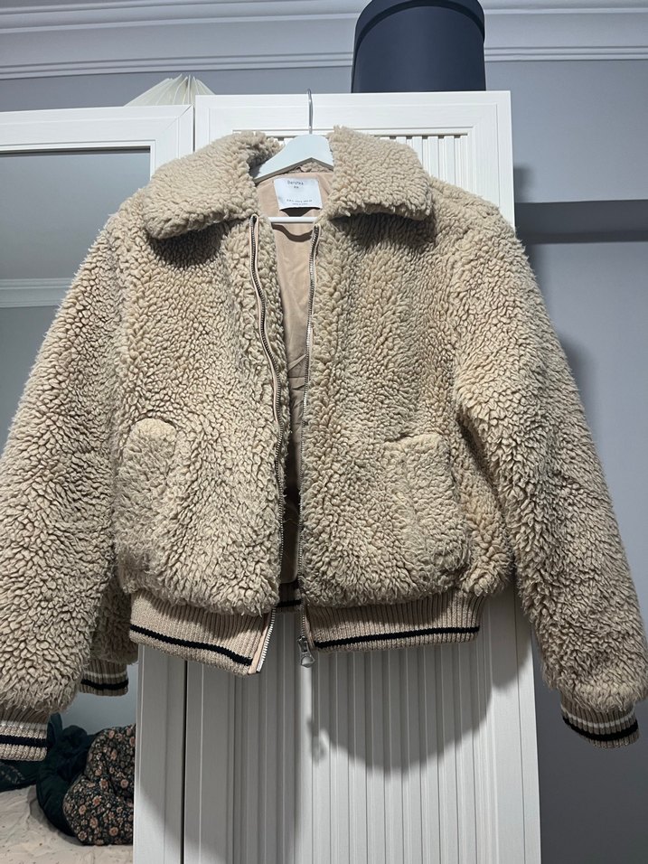 Bej renkte, kürklü detaylı, yumuşak ve sıcak kumaştan yapılmış, dar kesim ve yakası kesik detaylı kadın montudur. Uzun kollu ve midi boyda, rahat sokak stili için uygundur.