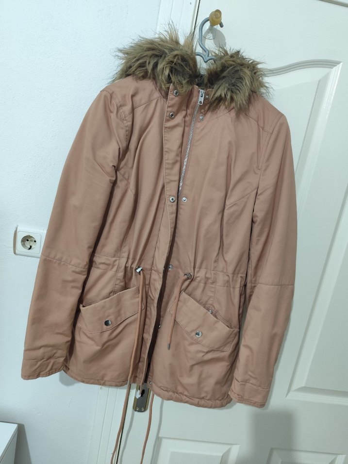 Bej renk, kürklü detaylı midi uzunlukta, notched lapel yakalı ve rahat kesim bir ceket. Parlak sentetik kumaştan, uzun kollu ve cep detaylıdır, gündelik sokak stili için uygundur.