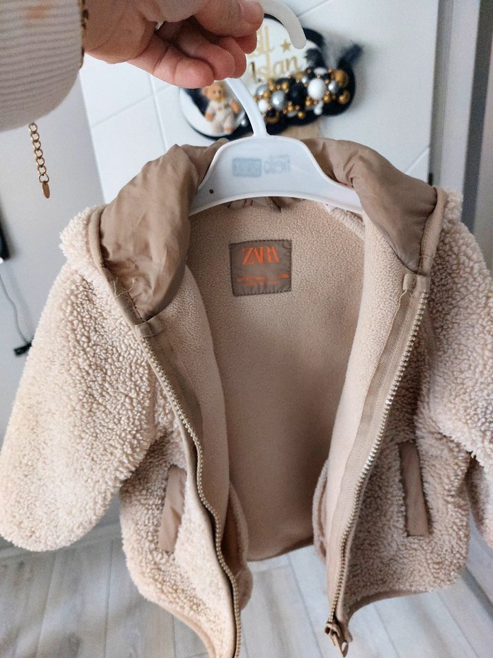 Bej renkte, kürklü detaylara sahip, bol kesim unisex çocuk street wear ceketi. Crew neck yakalı ve hafif baskılı deseniyle şık görünür.