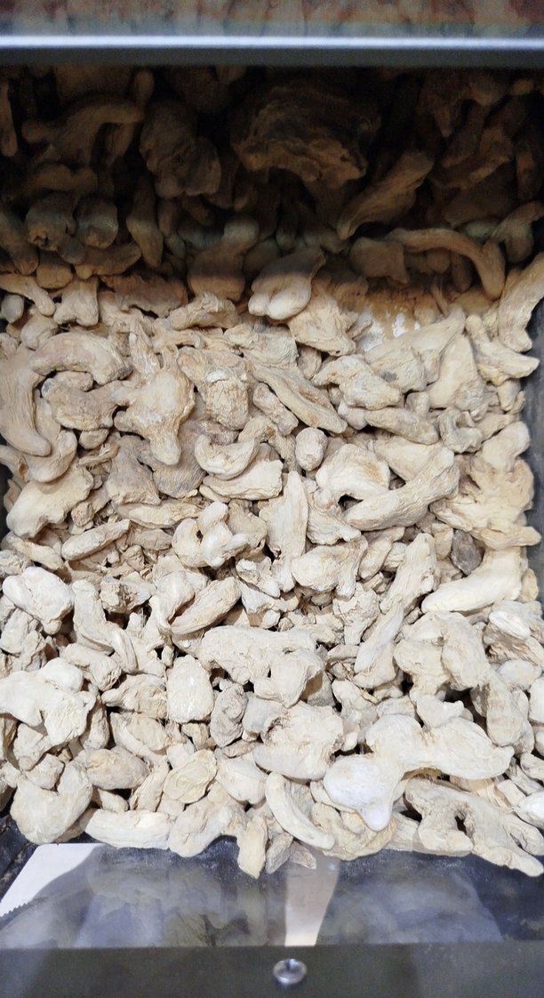 Doğal gri tonlu bej kuru zencefil parçaları, mutfak ve sağlık amaçları için uygundur.