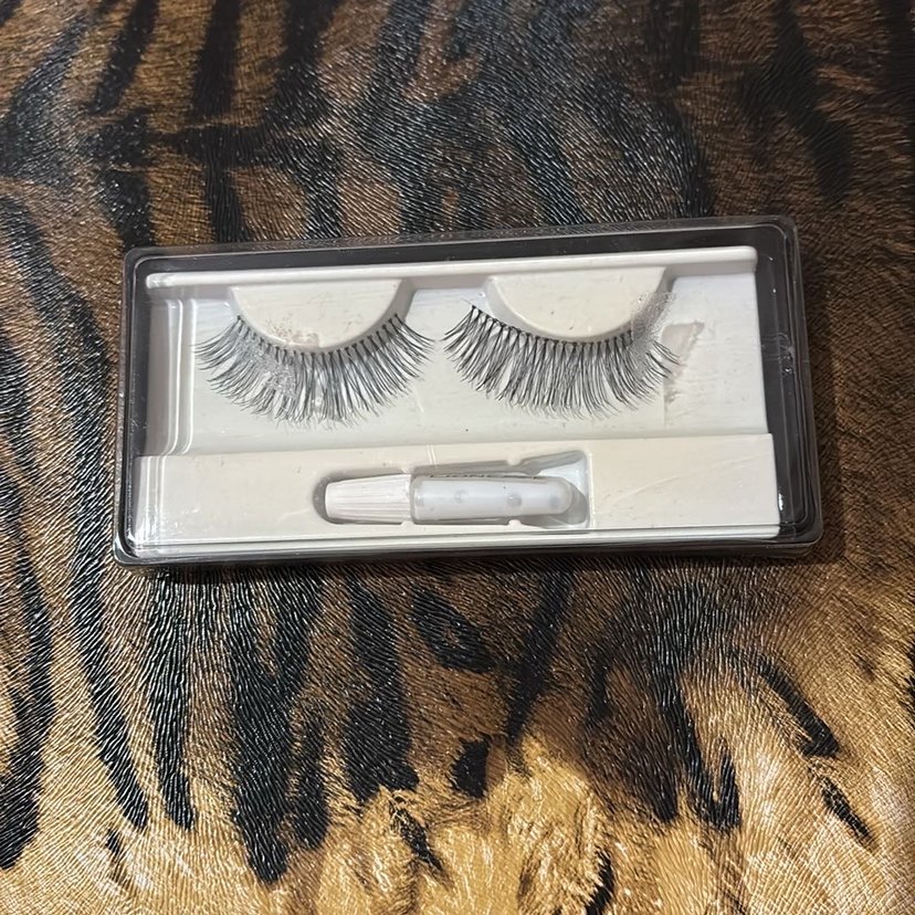 Bej tabanlı, gri renk takma kirpik seti ve uygulama için yapıştırıcı içerir. Göz görünümünü güçlendirmek için uygundur. ️