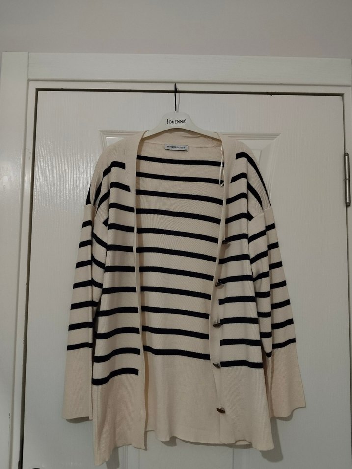 Bej lacivert Çizgili Kadın Hırka