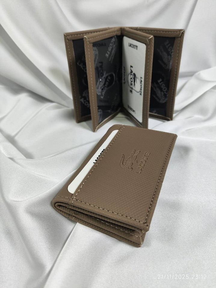 Bej renkli Lacoste erkek cüzdanı, baskılı iç yüzey ve çoklu kart bölmeleriyle klasik şıklığı sokak tarzıyla buluşturuyor.