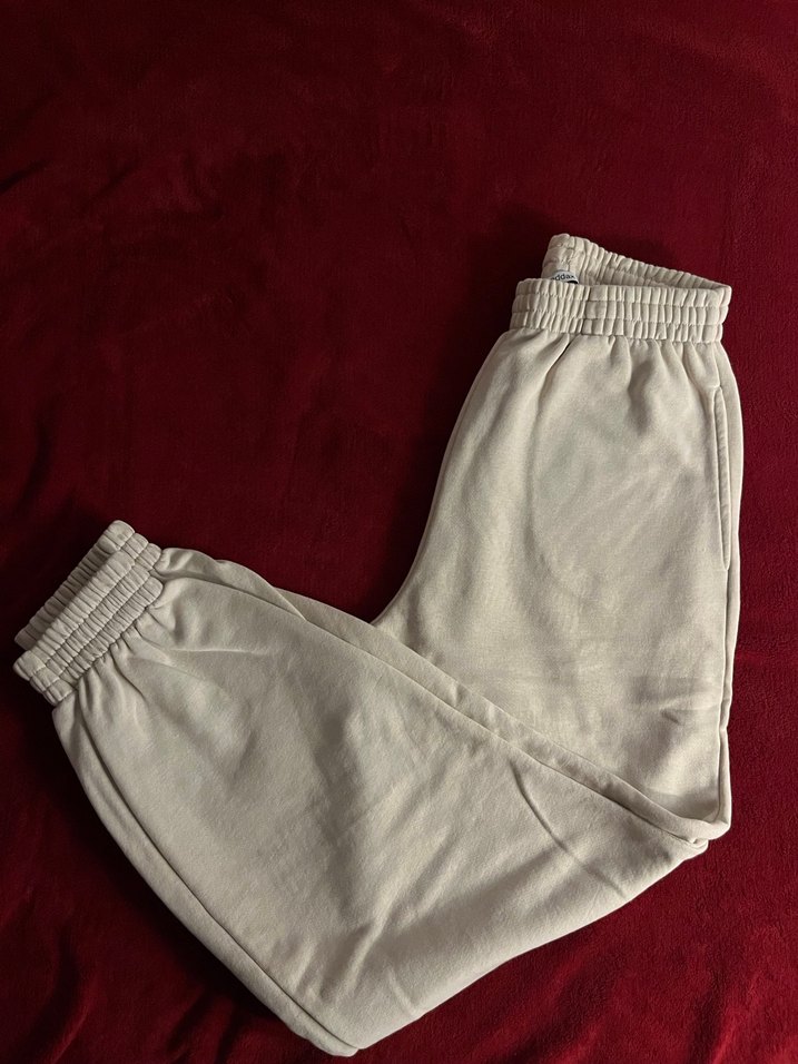 Bej renkte pacasi lastikli esofman alti bir sorunu yoktur