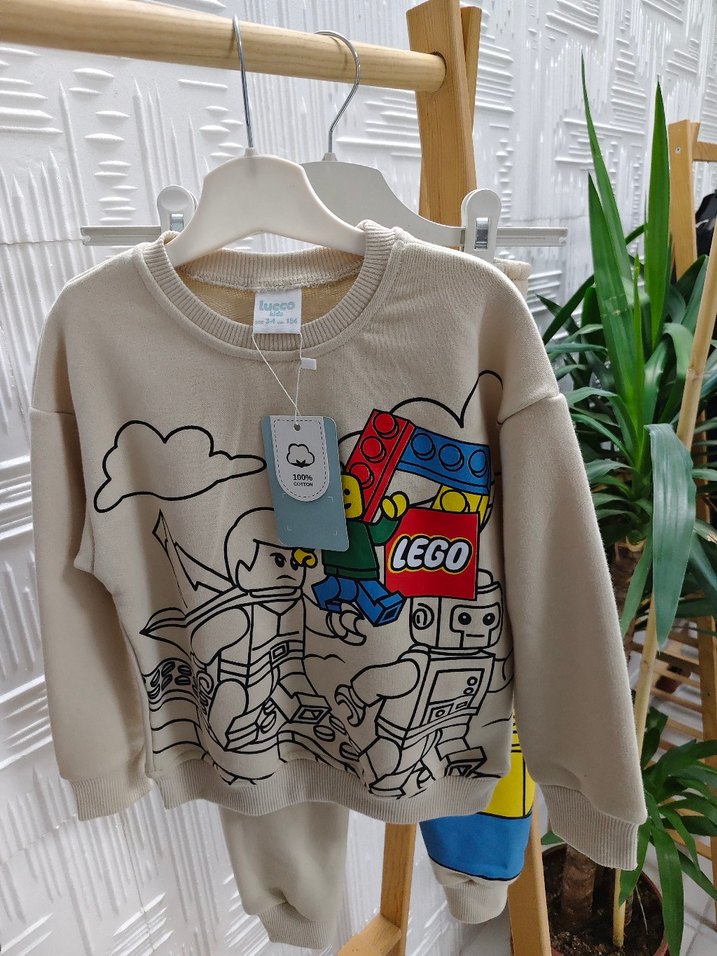 Bej LEGO Baskılı Erkek Sweatshirt takımı