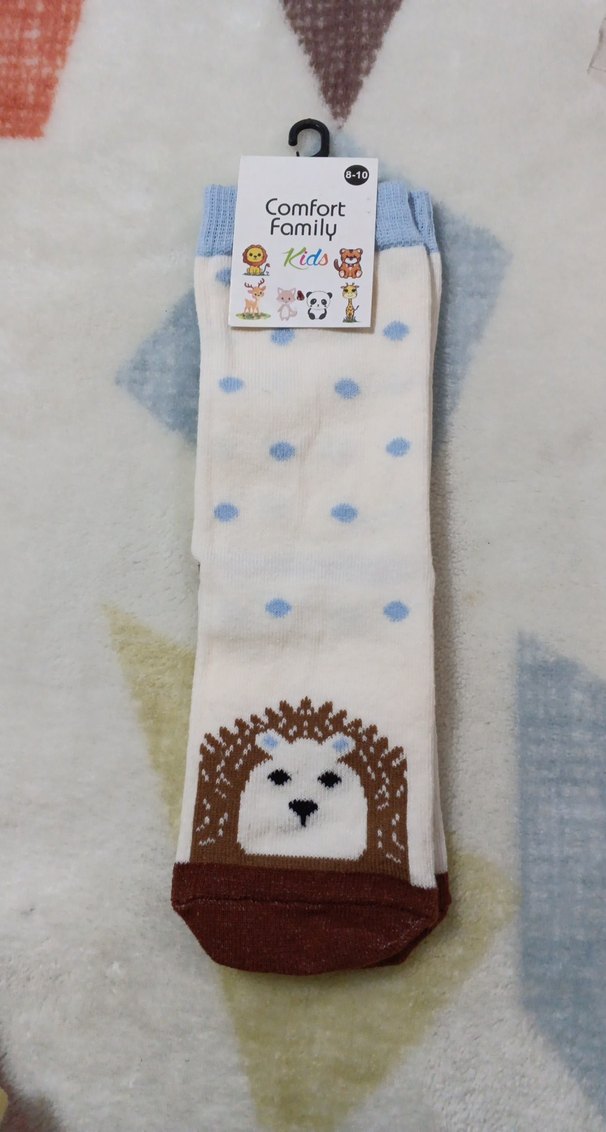 Leopar deseni ve pastel mavi noktalarla bej renk çorap. Comfort Family markalı, rahat kullanım sağlar. Dokusu yumuşaktır. 1 adettir. Ayak numarası 34 numaraya kadar olmktadır.