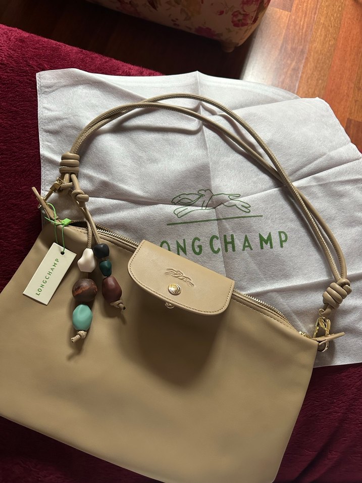 Bej Longchamp Deri Kadın Çanta Püsküllü Bohem