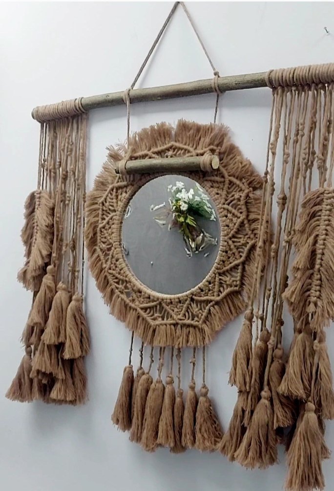 Bej Makrome Duvar Süsü Gri Detaylı