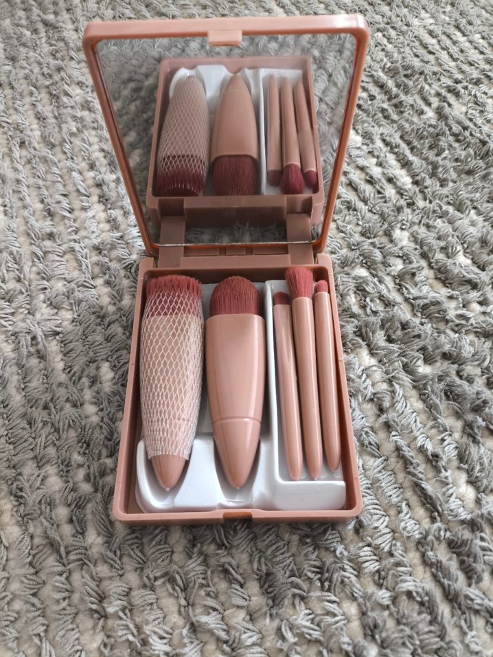 Yumuşak kıllara sahip, aynalı kompakt kutuda çoklu bej makyaj fırçası seti. Hassas uygulama ve kolay taşınabilirlik sağlar. ️