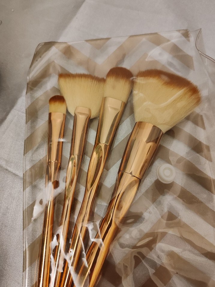 Yumuşak kıllara ve parlak saplara sahip bej makyaj fırçaları seti, çeşitli makyaj uygulamaları için uygundur. ️