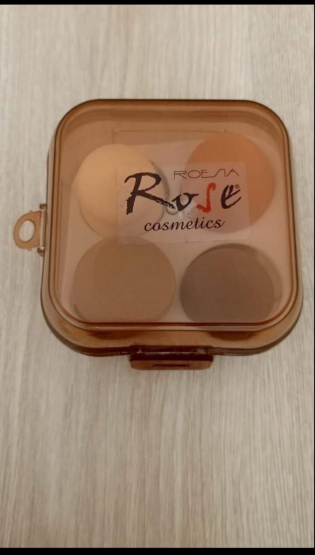 Rose Cosmetics markasına ait, pürüzsüz makyaj için dört adet açık bej makyaj süngeri seti.