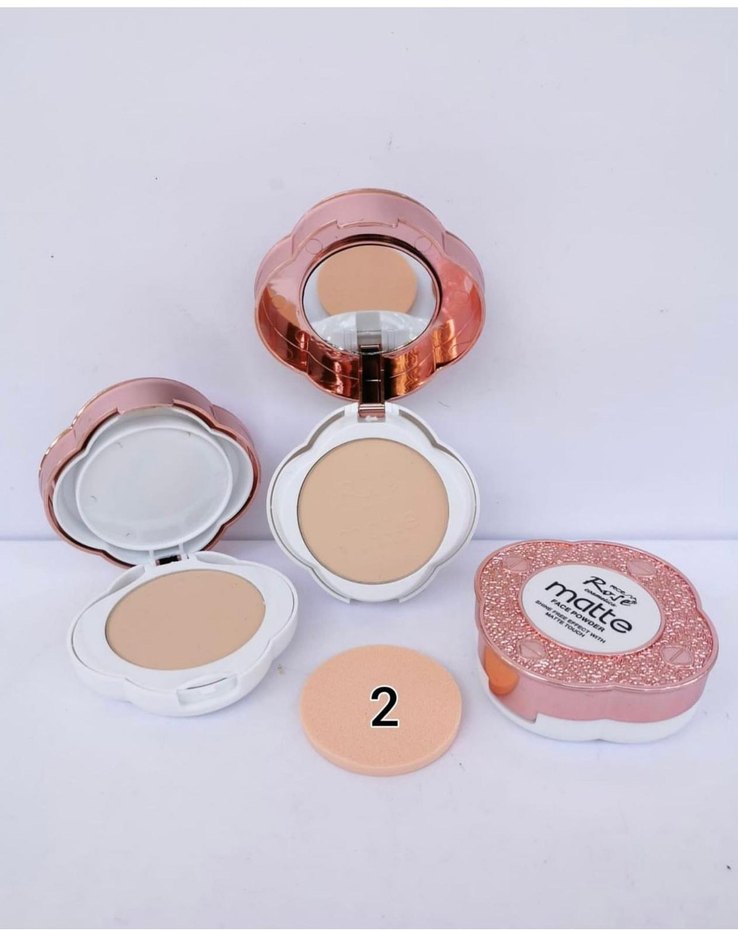 Aynalı ve sünger aplikatörlü, mat bitişli açık bej kompakt pudra. Renk numarası 2.